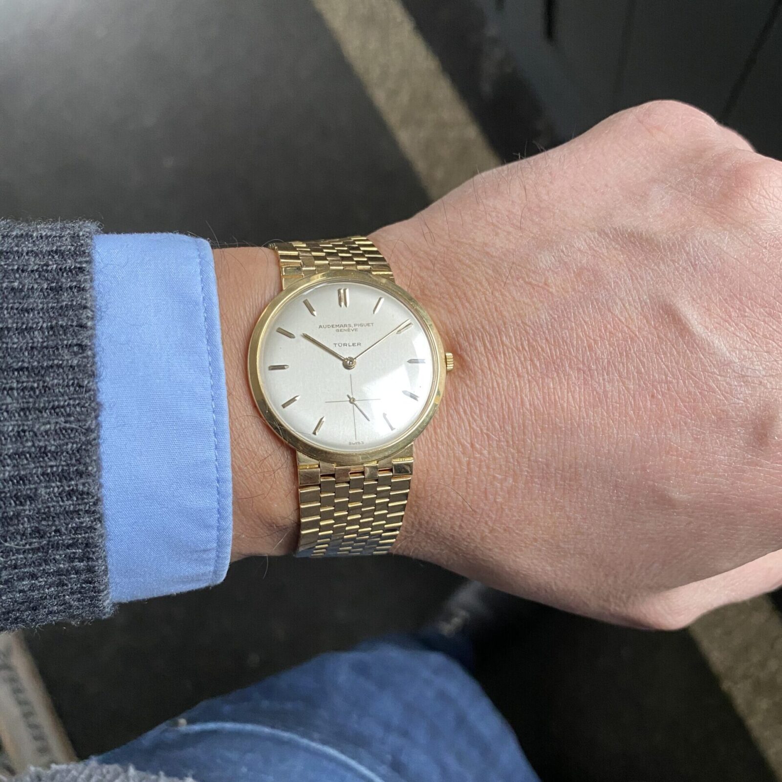 Extremely rare Audemars Piguet ultra thin dress watch in 18k yellow gold.